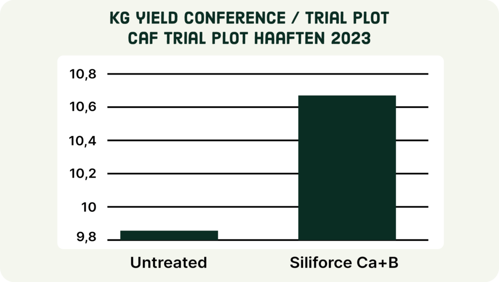 The benefits of Siliforce aren’t just visible in the orchard—they’re backed by scientific research. In 2023, CAF and other leading research institutes conducted field trials with Siliforce on pears. These are the results: